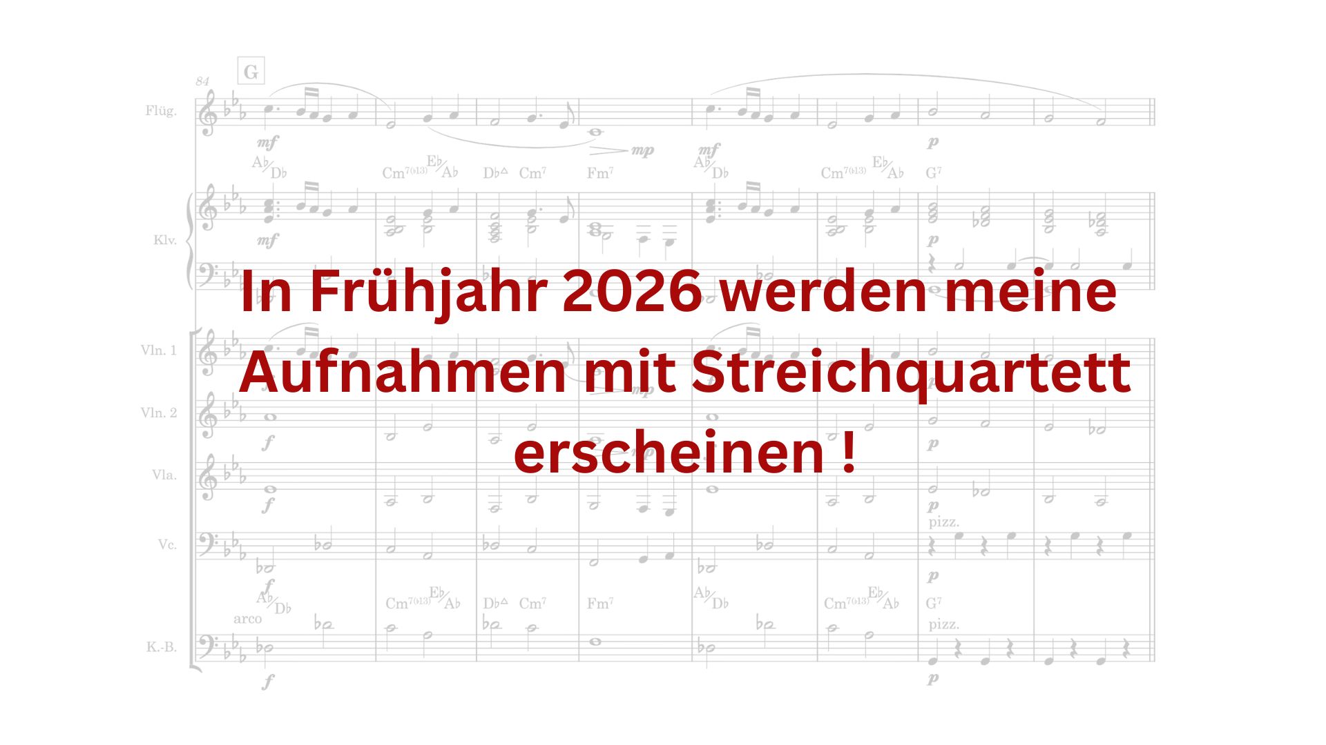 Im Frühjahr 2026 erscheinen meine neuen Aufnahmen mit einem Streichquartett. Ich freue mich sehr, dieses lange geplante Projekt nun endlich realisieren zu können, da mich die Klangwelt eines Streichquartetts schon immer besonders fasziniert hat.